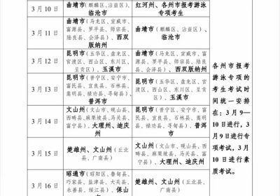 体育类专业统考考试时间:2026年3月9—18日(共10天),如遇不可抗拒因素考试无法正常进行时,考试时间依次顺延。 3月4日起可下载打印准考证。 云南职教高考体育类考生按照全省普…
