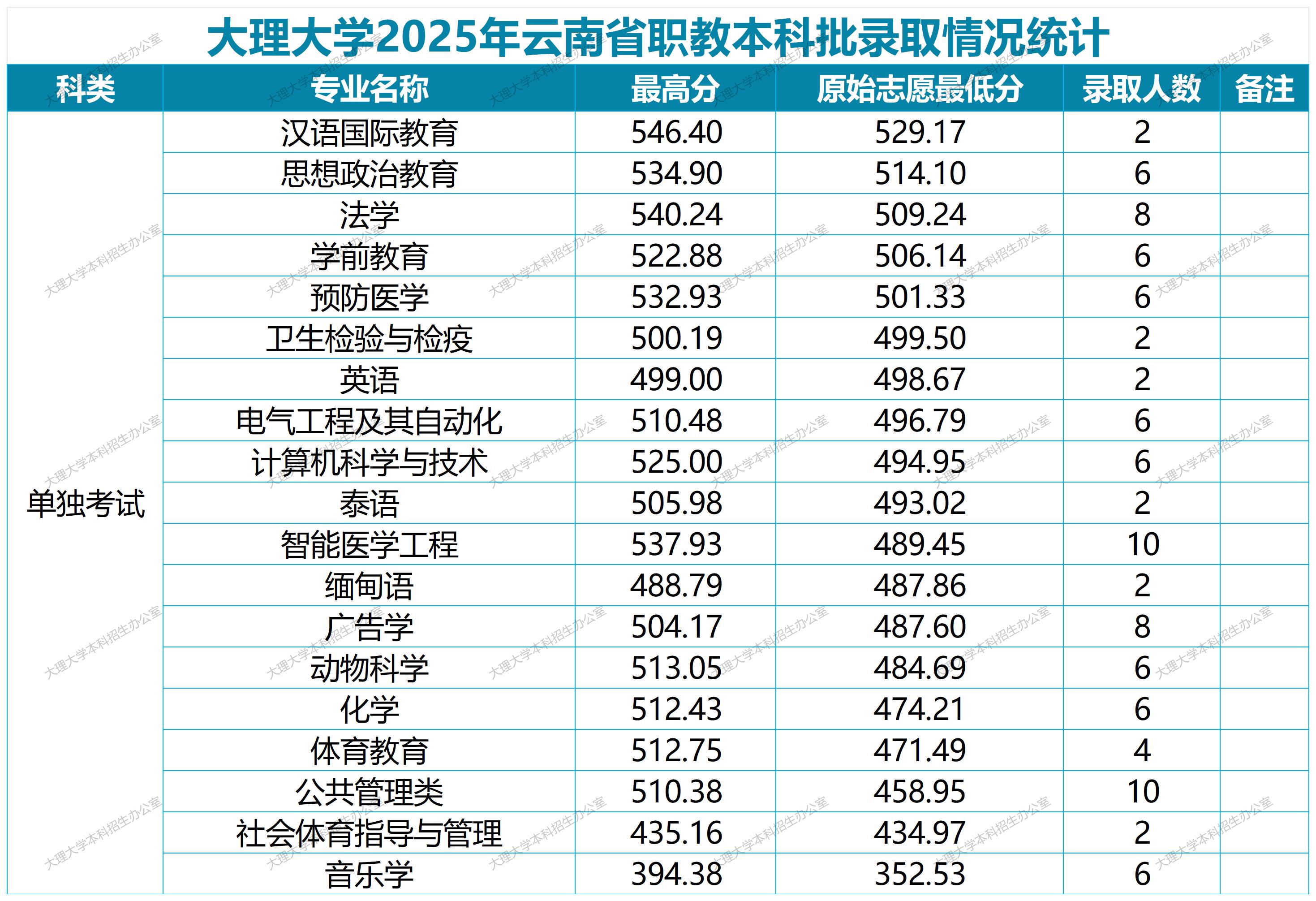 大理大学2025年职教本科招生简章及批次录取情况统计