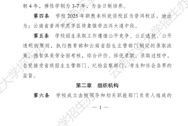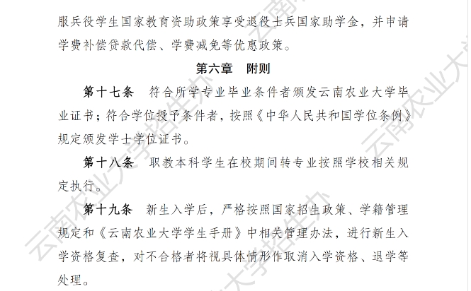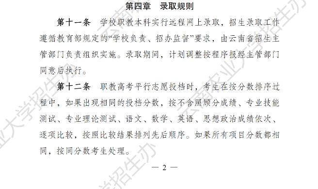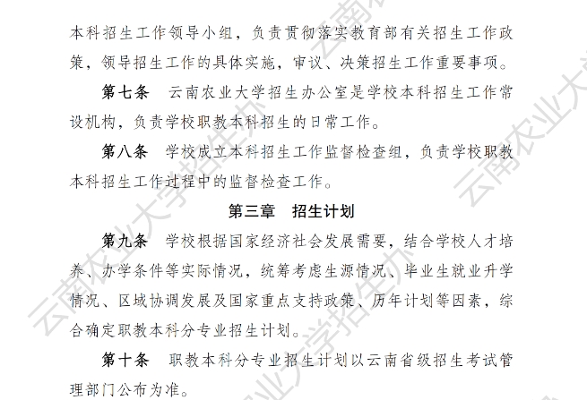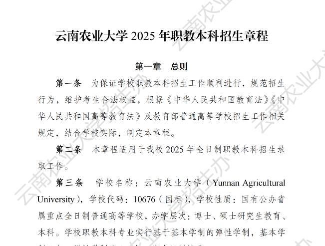 职教高考 农林养殖类、职教本科批 、招生代码:5303 、专业农学 普洱校区