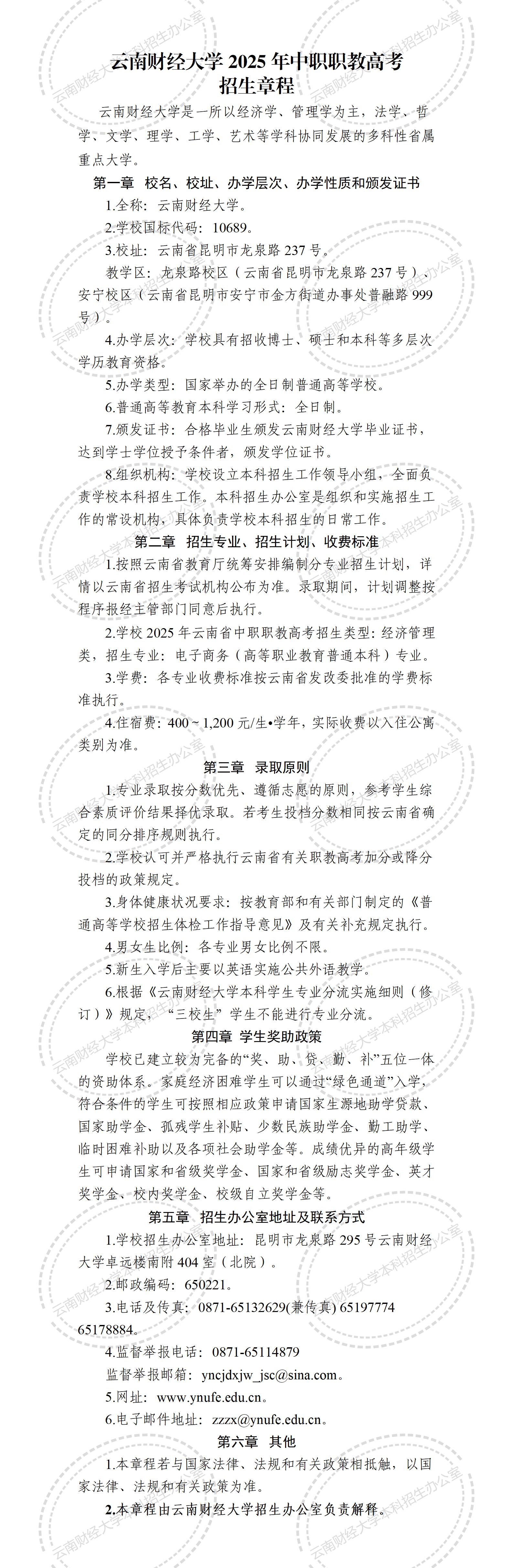 2025年云南财经大学中职职教高考招生简章