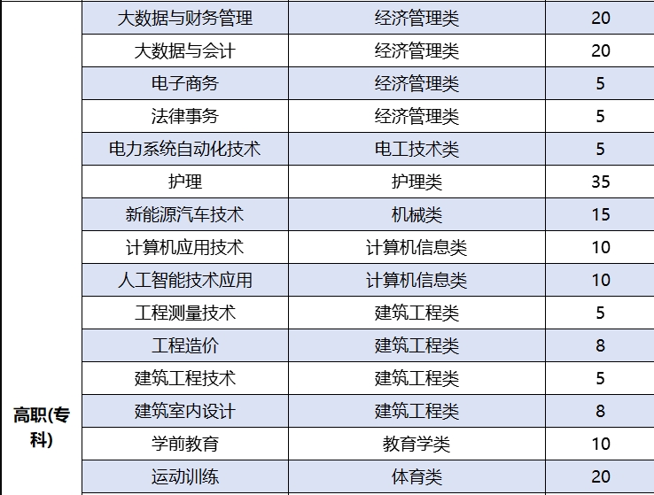 2025年职教高考招生专业计划
